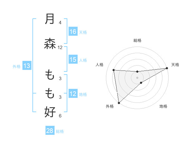 月森 もも好さんの外格は13画の5点!