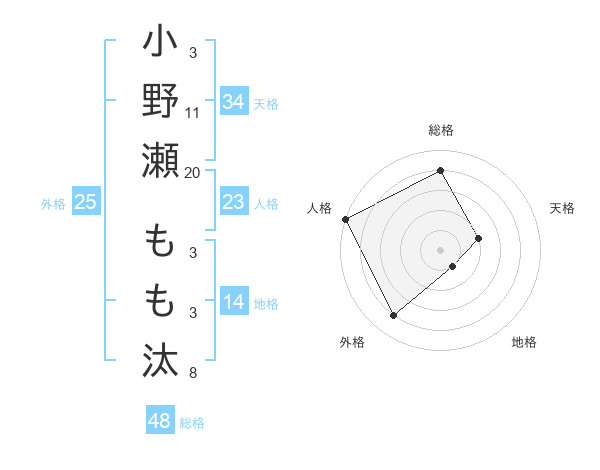 小野瀬 もも汰さんを姓名の画数から五運を鑑定