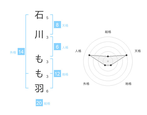 石川 もも羽さんを姓名の画数から五運を鑑定