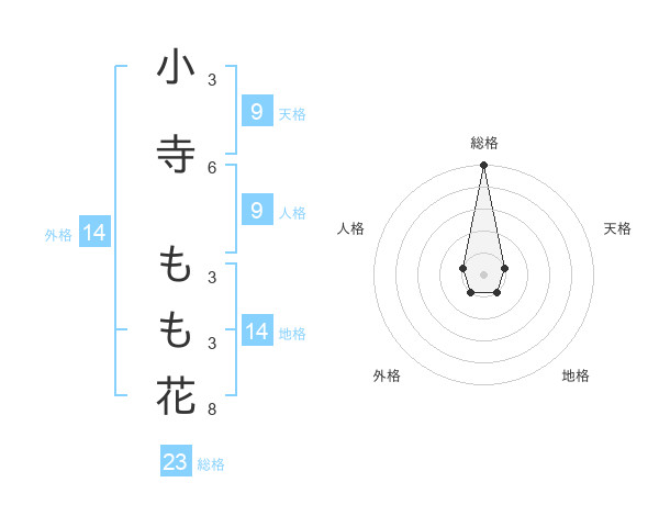 小寺 もも花さんを姓名の画数から五運を鑑定