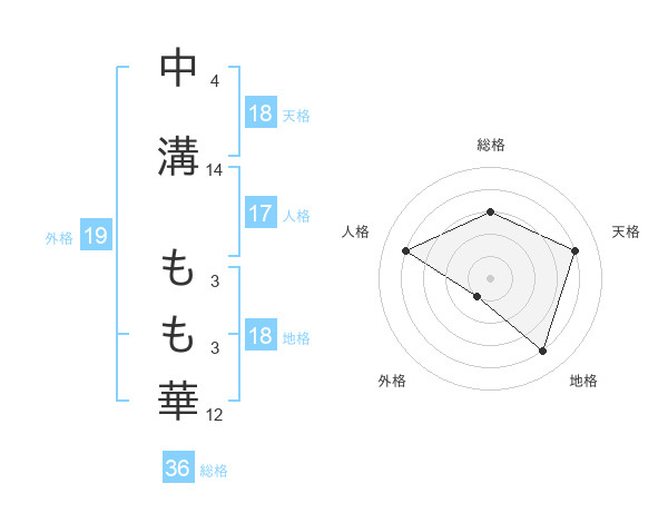中溝 もも華さんを姓名の画数から五運を鑑定