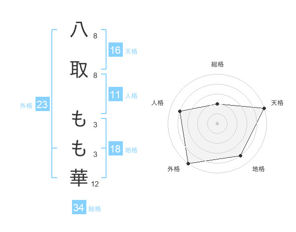 八取 もも華さんの外格は23画の5点!