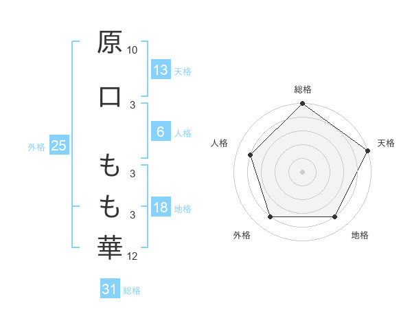 原口 もも華さんの総格は31画の5点!