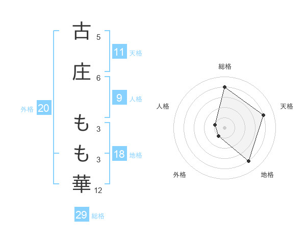 古庄 もも華さんを姓名の画数から五運を鑑定