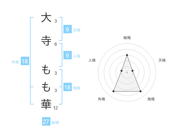 大寺 もも華さんを姓名の画数から五運を鑑定