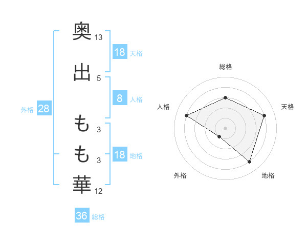 奥出 もも華さんの天格は18画の4点!