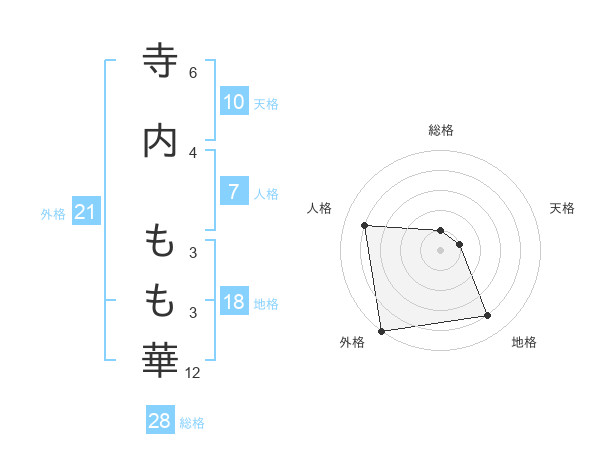 寺内 もも華さんの外格は21画の5点!