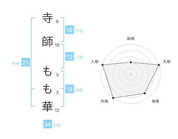 寺師 もも華さんの天格は16画の5点!