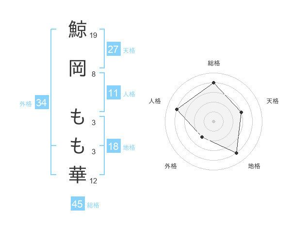 鯨岡 もも華さんを姓名の画数から五運を鑑定
