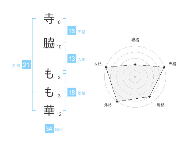 寺脇 もも華さんの外格は21画の5点!