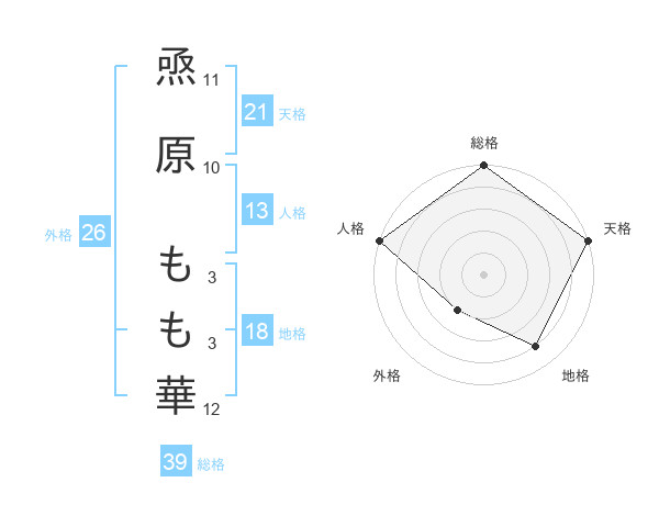 焏原 もも華さんを姓名の画数から五運を鑑定