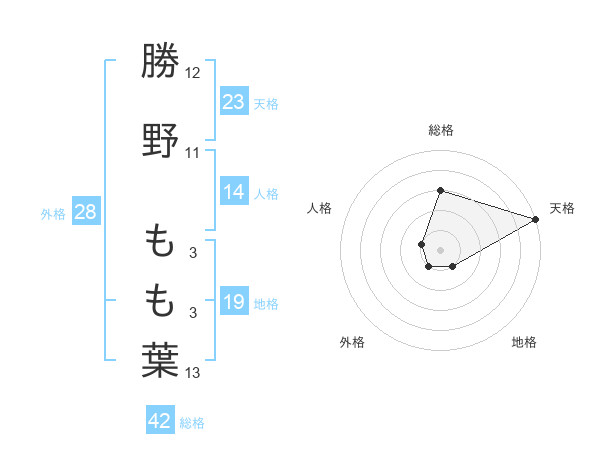 勝野 もも葉さんを姓名の画数から五運を鑑定