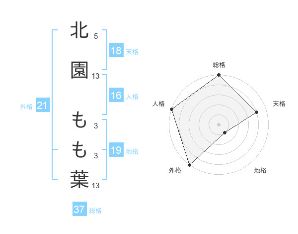 北園 もも葉さんを姓名の画数から五運を鑑定