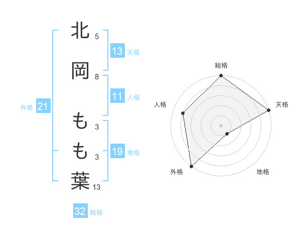 北岡 もも葉さんの総格は32画の5点!