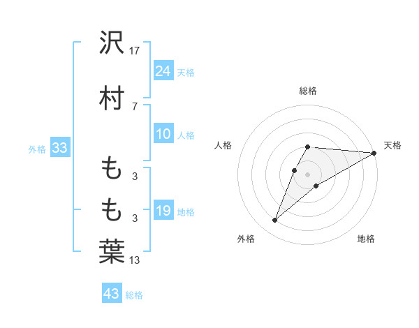 沢村 もも葉さんを姓名の画数から五運を鑑定