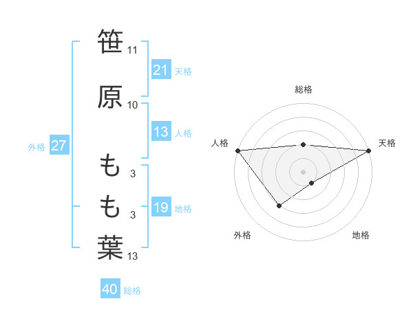 笹原 もも葉さんを姓名の画数から五運を鑑定
