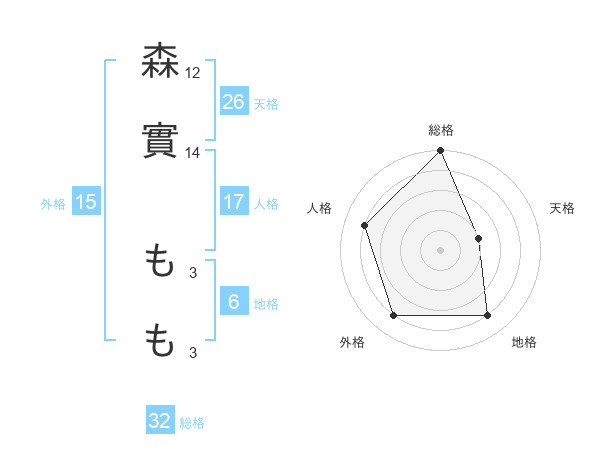 森實 ももさんの総格は32画の5点!