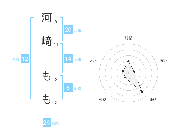 河﨑 ももさんを姓名の画数から五運を鑑定