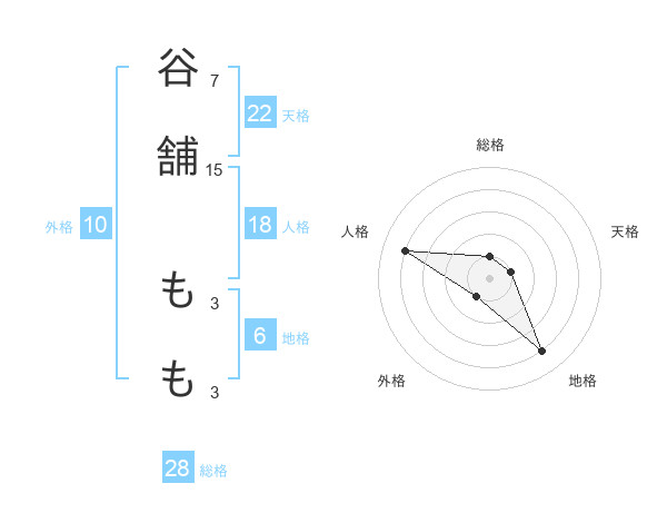 谷舗 ももさんの総格は28画の1点!
