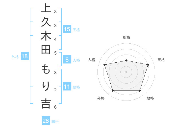 上久木田 もり吉さんを姓名の画数から五運を鑑定
