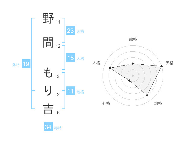 野間 もり吉さんを姓名の画数から五運を鑑定