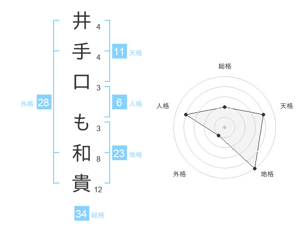 井手口 も和貴さんを姓名の画数から五運を鑑定