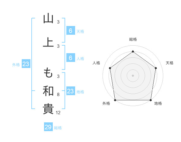 山上 も和貴さんの地格は23画の5点!