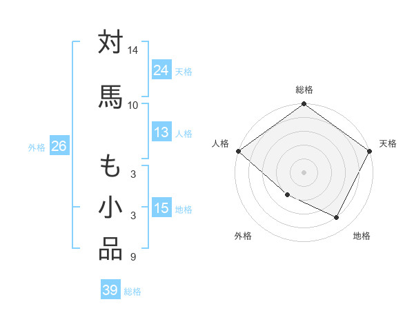 対馬 も小品さんの総格は39画の5点!