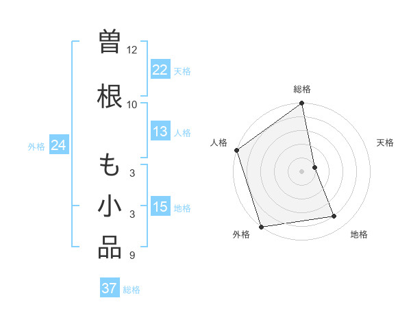 曽根 も小品さんを姓名の画数から五運を鑑定