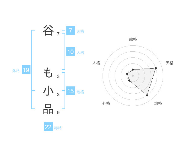 谷 も小品さんの総格は22画の1点!