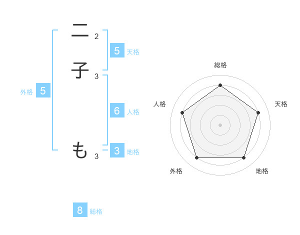 二子 もさんの総格は8画の4点!