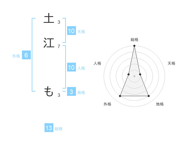 土江 もさんの総格は13画の5点!