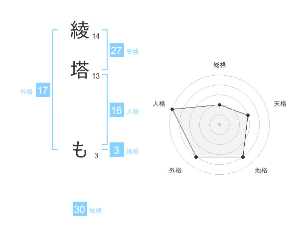綾塔 もさんの天格は27画の3点!