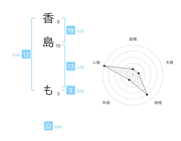 香島 もさんの総格は22画の1点!