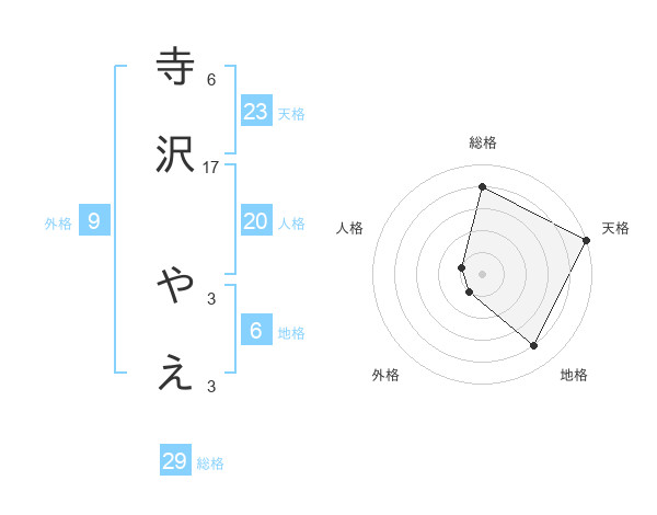 寺沢 やえさんの総格は29画の4点!