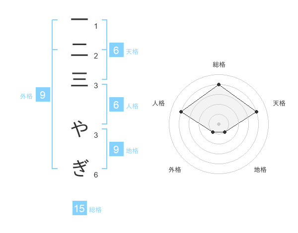一二三 やぎさんの総格は15画の4点!