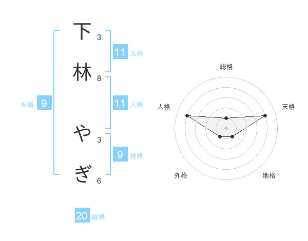 下林 やぎさんの総格は20画の1点!