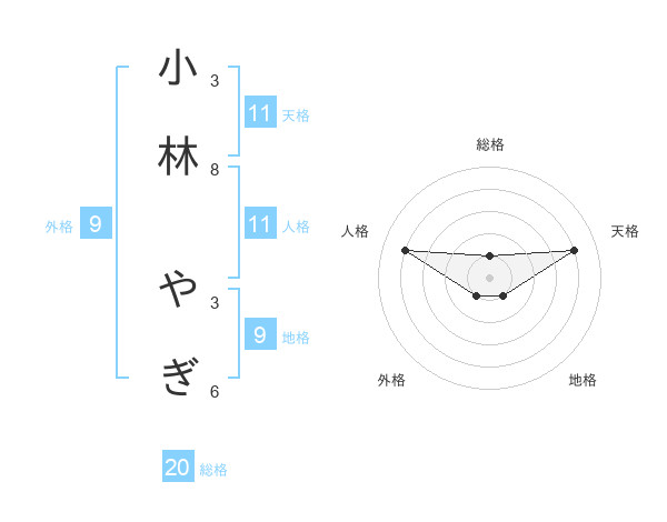 小林 やぎさんの総格は20画の1点!