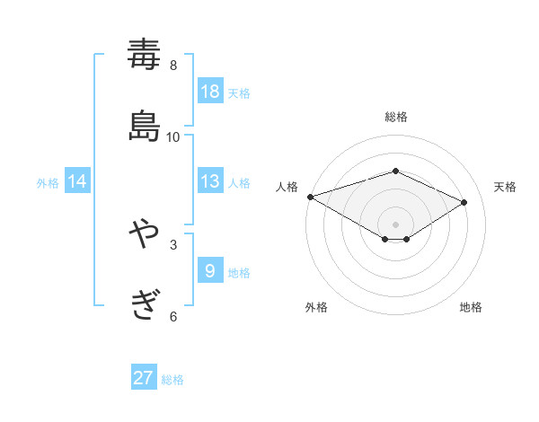 毒島 やぎさんを姓名の画数から五運を鑑定
