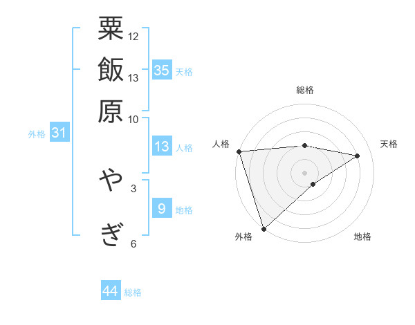 粟飯原 やぎさんを姓名の画数から五運を鑑定