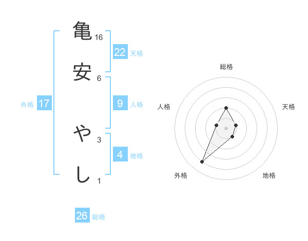 亀安 やしさんの総格は26画の2点!