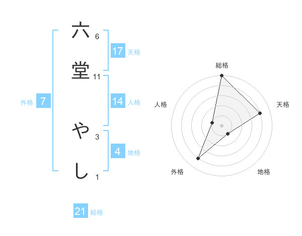 六堂 やしさんの総格は21画の5点!