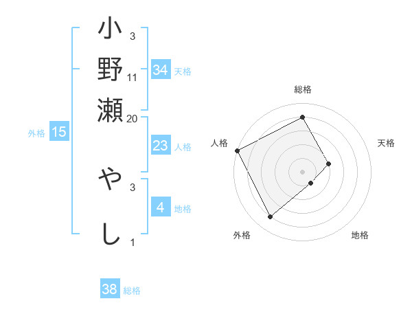 小野瀬 やしさんの総格は38画の4点!