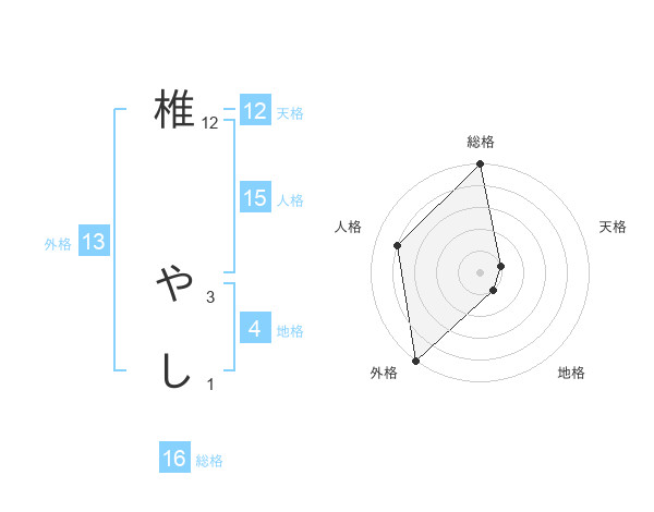 椎 やしさんの外格は13画の5点!