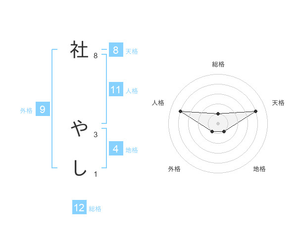 社 やしさんの総格は12画の1点!