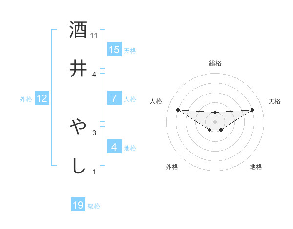 酒井 やしさんの天格は15画の4点!