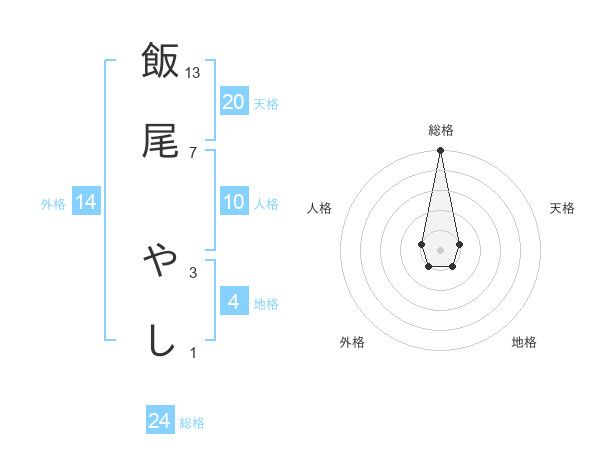 飯尾 やしさんの総格は24画の5点!