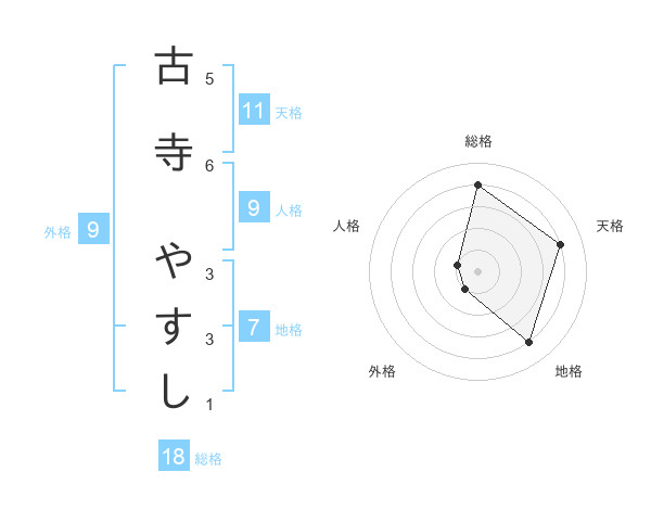古寺 やすしさんの総格は18画の4点!