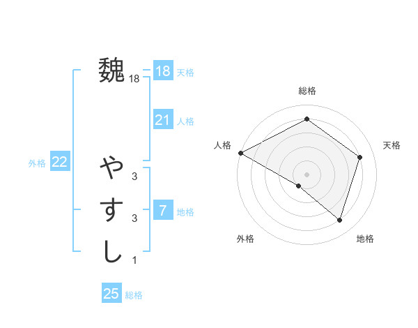 魏 やすしさんの人格は21画の5点!