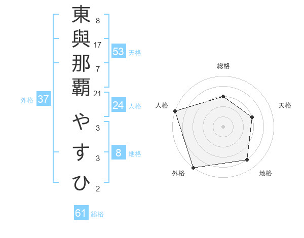 東與那覇 やすひさんを姓名の画数から五運を鑑定